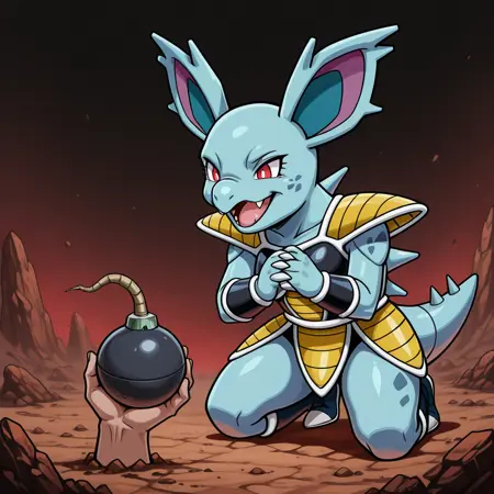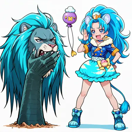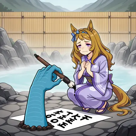 이 LoRA 렌더러는 세로형 이미지에서 매우 낮은 성능을 보입니다. 여러 차례 시도한 끝에 땅에서 손이 나오는 이미지를 얻을 수는 있지만, 이는 최적의 결과가 아닙니다. LoRA는 장면에 여러 캐릭터가 등장할 때도 성능이 좋지 않습니다.