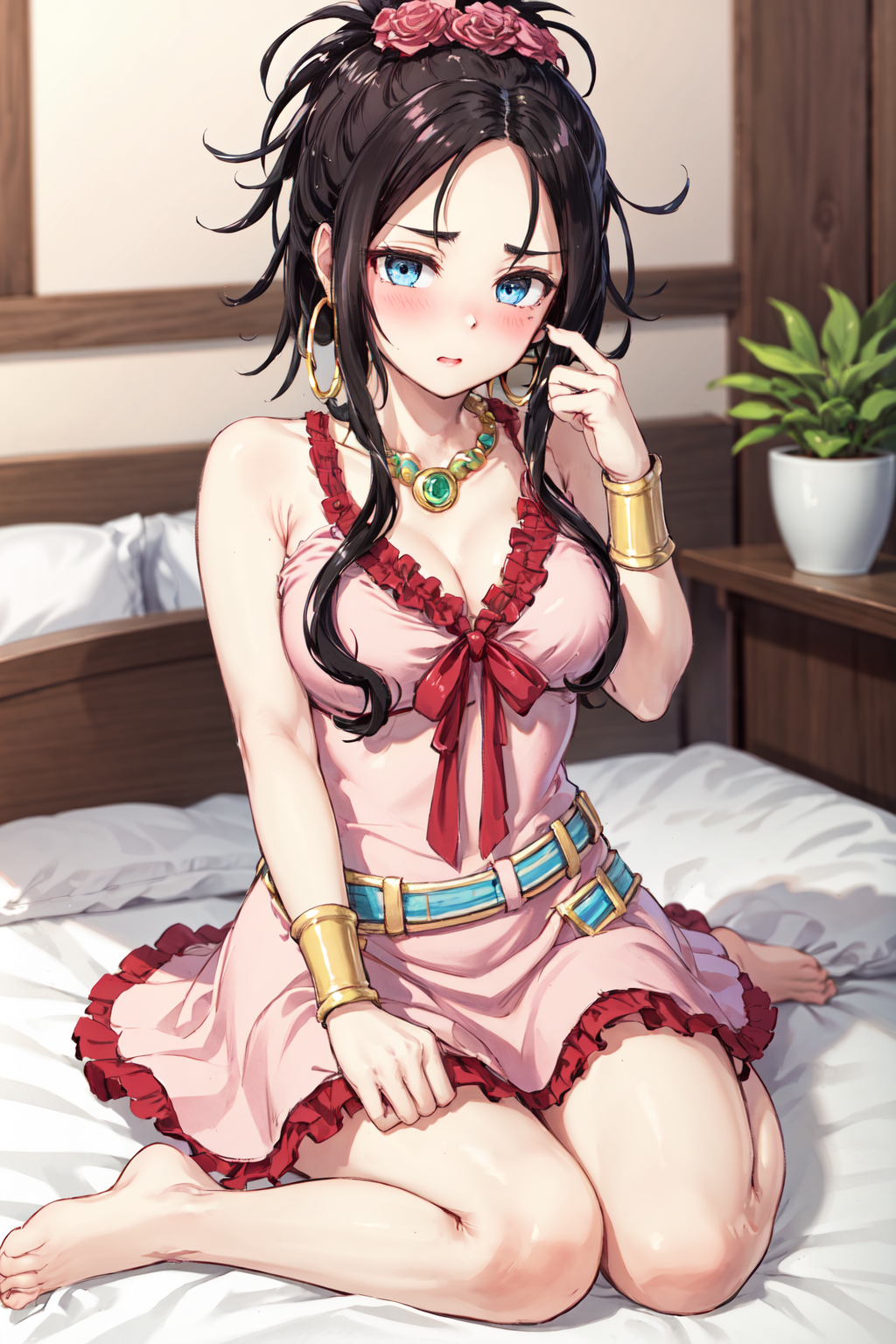 • aadeborah,(眼下痣:0.8),蓝眼睛,长发,发饰花,红玫瑰,耳环,项链,羽毛围巾,(粉红色裙子:1.3),丝带,手镯,腰带,赤脚,红色高跟鞋