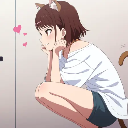 AMWCat, brown hair, animal ears, cat ears, short hair, eyebrows visible through hair, long hair, brown eyes, cat tail, tail,