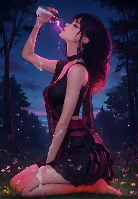 该模型最突出的特点是其对氛围感和柔和暖光的捕捉。无论是室内百叶窗投下的斑驳光影,还是黄昏森林中透出的金色余晖,Sari Glaze 都能为画面带来温暖、梦幻且充满故事性的氛围。它让角色在复杂的服饰和光影下,展现出神秘而精致的美感。