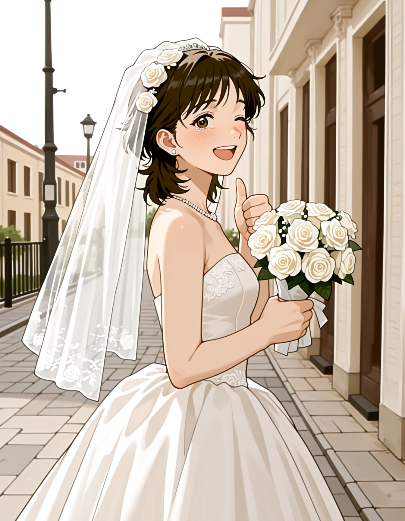 メイントリガー: Fuyutsuki, brown eyes, black-brown hair, short wavy hair;