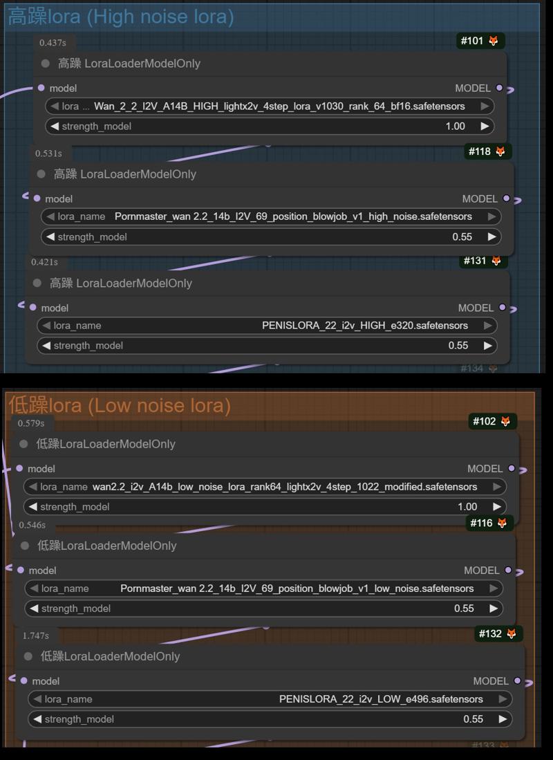저소음 LoRA와 고소음 LoRA는 함께 사용해야 합니다.