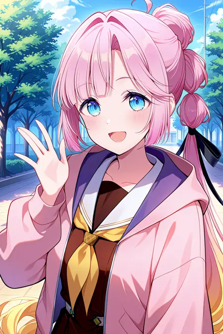 渐变发色, 发丝内收, 长发, 多扎发, 多色发, 粉发,