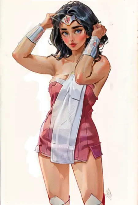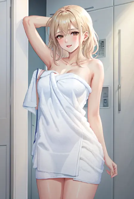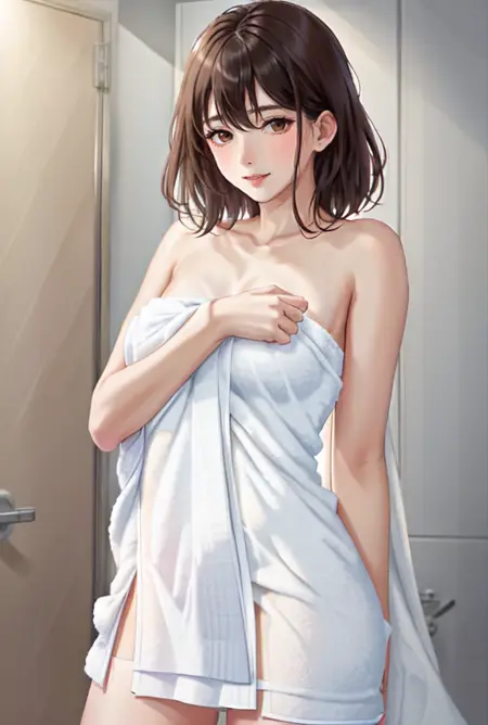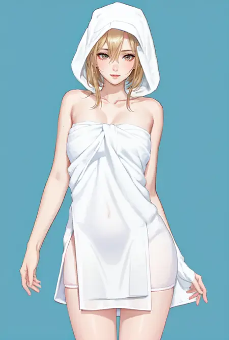 激活词为 BodyTowel。添加“用毛巾包裹”等词语也有帮助。生成的输出很可能是白色毛巾,您可能可以控制毛巾的基本颜色,但不要期望有细节表现。