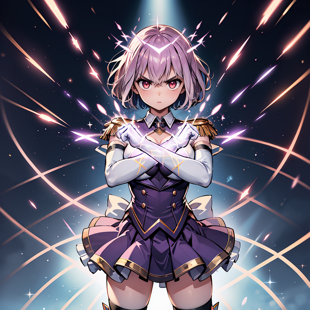I attempted to create a depiction of arms crossed in an 'X' shape using Stable Diffusion's prompts alone, but it seemed unfeasible, so I assembled it with Lora. This pose might be part of a transformation scene, focusing on the character. Depending on the Lora character, it could also be used for a dual-wielding stance, or instead of clenched hands, the fingers could be extended to form an 'X' (cross mark). Feel free to experiment with this versatile pose.