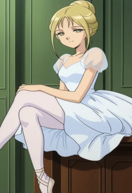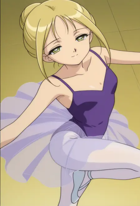 Freya 芭蕾形象:1girl,金发,绿眼,黄眼,半闭眼睛,成熟女性,单发髻,短发