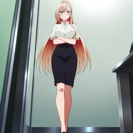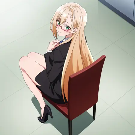PrimulaFormal, 치마, 안경, 연필 치마, 정장, 미니스커트, 수트, 재킷, 긴 소매, 오피스 레이디, 스커트 수트, 하이힐, 흰색 셔츠, 검은색 치마, 반프레임 안경, 넥타이, 검은색 재킷,