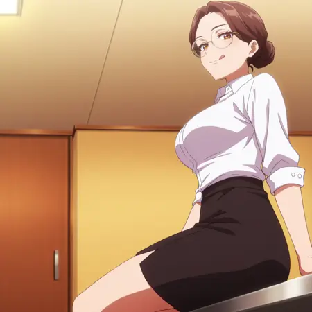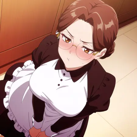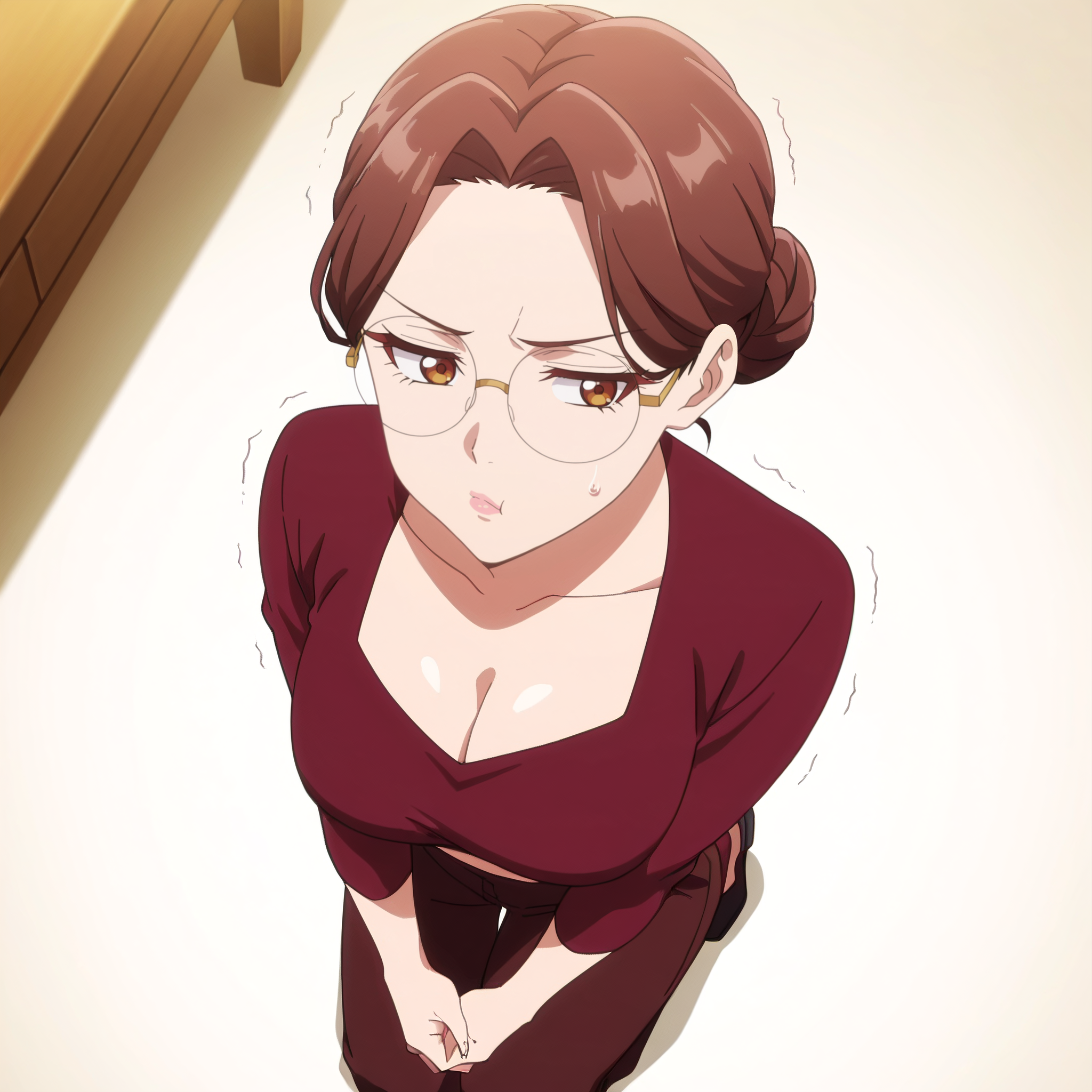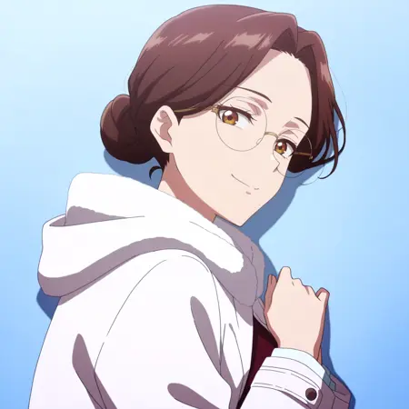 A4OMailen、茶色の目、茶色の髪、短い髪、髪の結び目、前髪、長い髪、眼鏡、