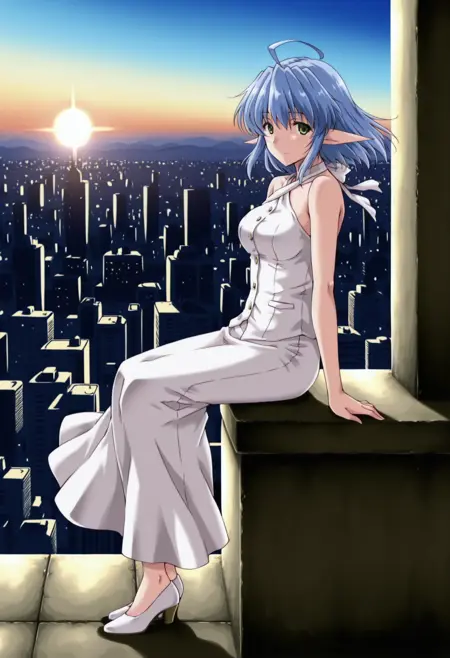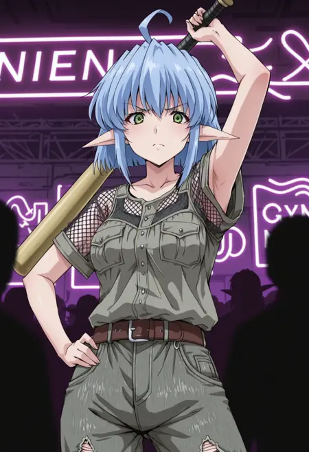 injutsun0yaka1am3lf1, 1girl, 尖った耳, 緑の目, 中くらいの髪, ボブカット, 横髪, 青い髪, アホ毛, 中くらいの胸,