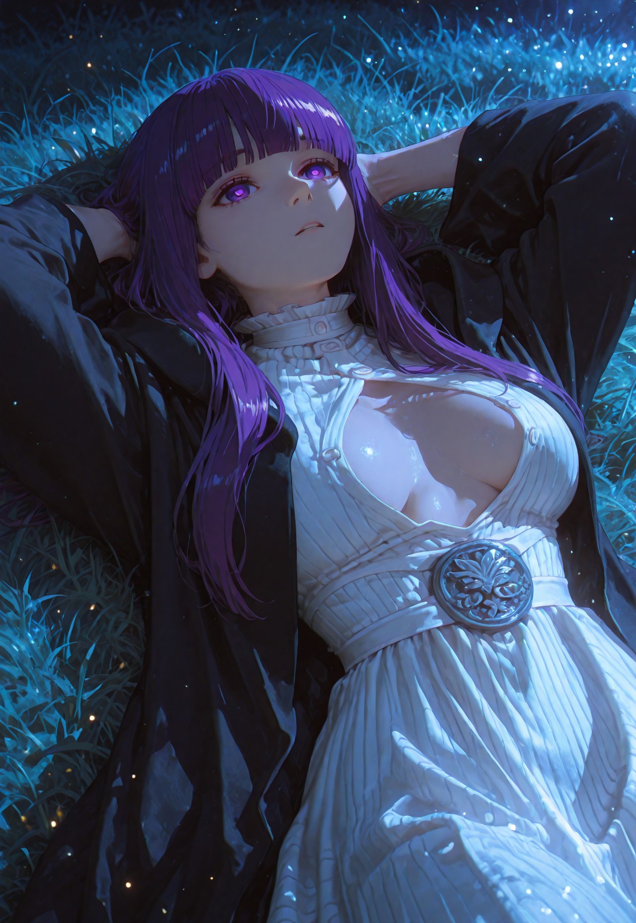 더 일관된 위에서 아래로 보는 시점을 위해. 또한 가슴 사이의 물리적 움직임을 더 잘 도와주는 역할도 함.