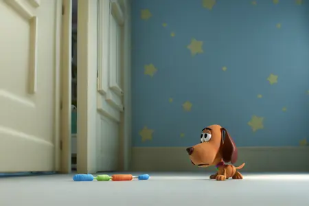 slinky_dog, slinky, dog, plastic_skin, floppy_ears, long_ears, black_eyes