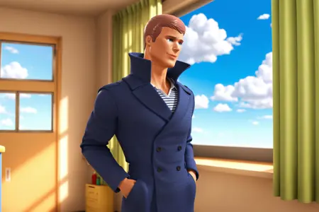 buzz_lightyear, action_figure, plastic_skin, no_humans, pointy_nose, blue_eyes, space_suit, jetpack, space_helmet, transparent_helmet, fishbowl_helmet, furrowed_brow, raised_eyebrow, forced_smile, wide-eyed