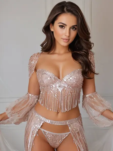 • 초고급 패션 아우트핏 생성: 다이아몬드 장식 미니스커트, 페인트 가죽 바디수트, 글리터 크롭탑, 하늘 높이 솟은 플랫폼 신발