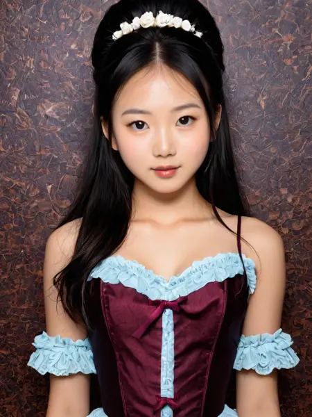 Step into a world where innocence meets obsidian edge with Gothic Lolita. This LoRA captures the porcelain doll aesthetic infused with Victorian mourning glamour—delicate yet untouchable, tragic yet commanding. Think cathedral steps at midnight and underground tea parties lit by candlelight. Bell skirts puffed over lace petticoats, corsets laced tight over ruffled blouses, velvet capes clasped with cameos, and miniature top hats complete the look. The palette is midnight black, blood burgundy, ivory, and tarnished silver, rendered in velvet, lace, taffeta, and brocade.
