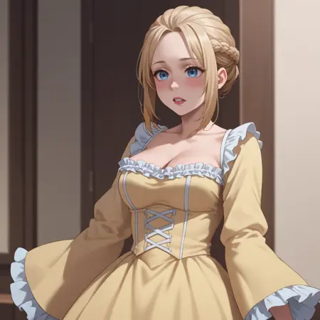 CanaanYellow,锁骨,胸脯,荷叶边,连衣裙,长袖,宽袖,褶边连衣裙,黄色连衣裙,