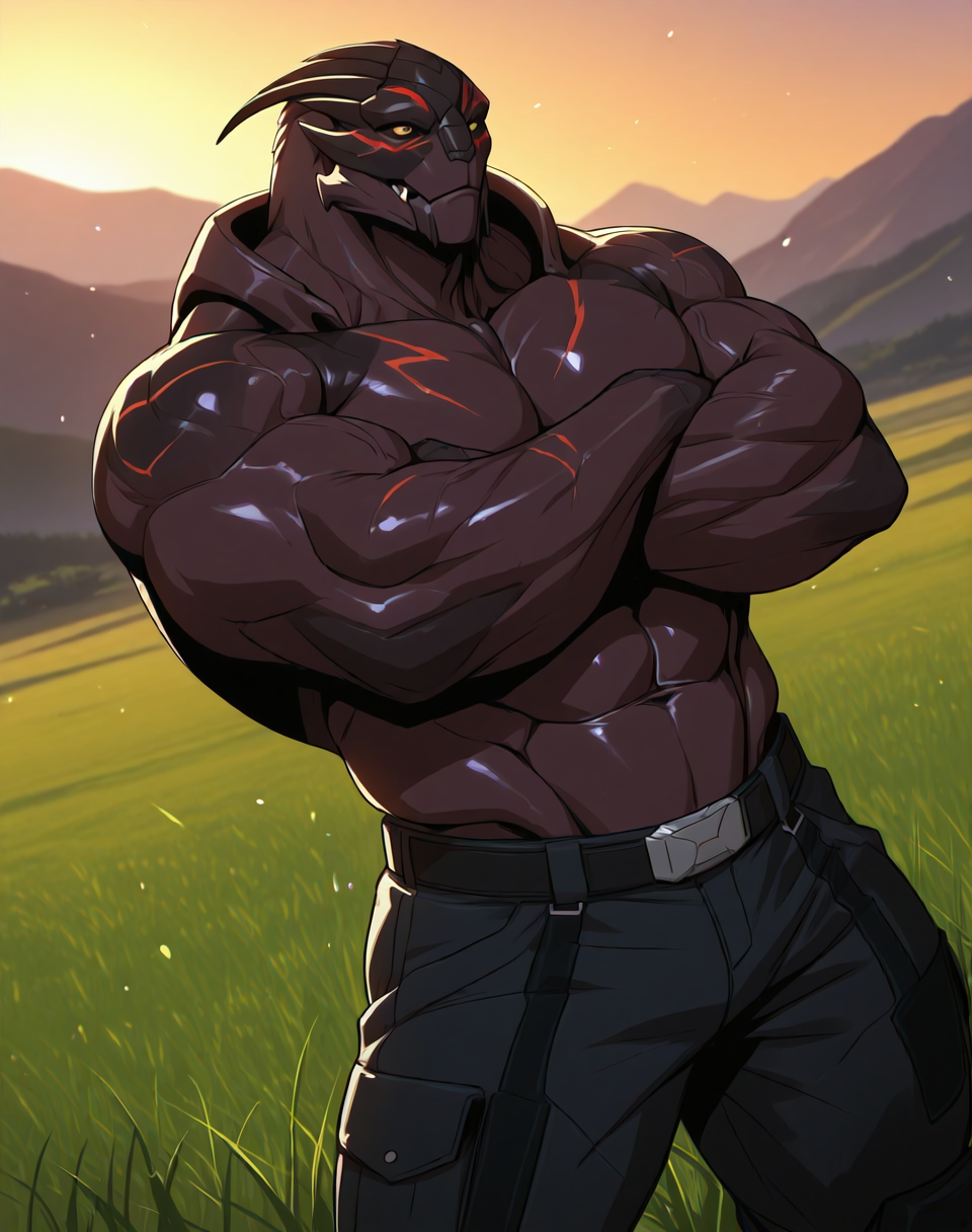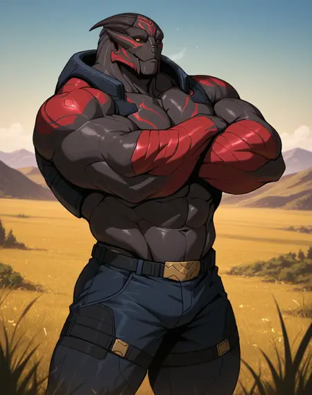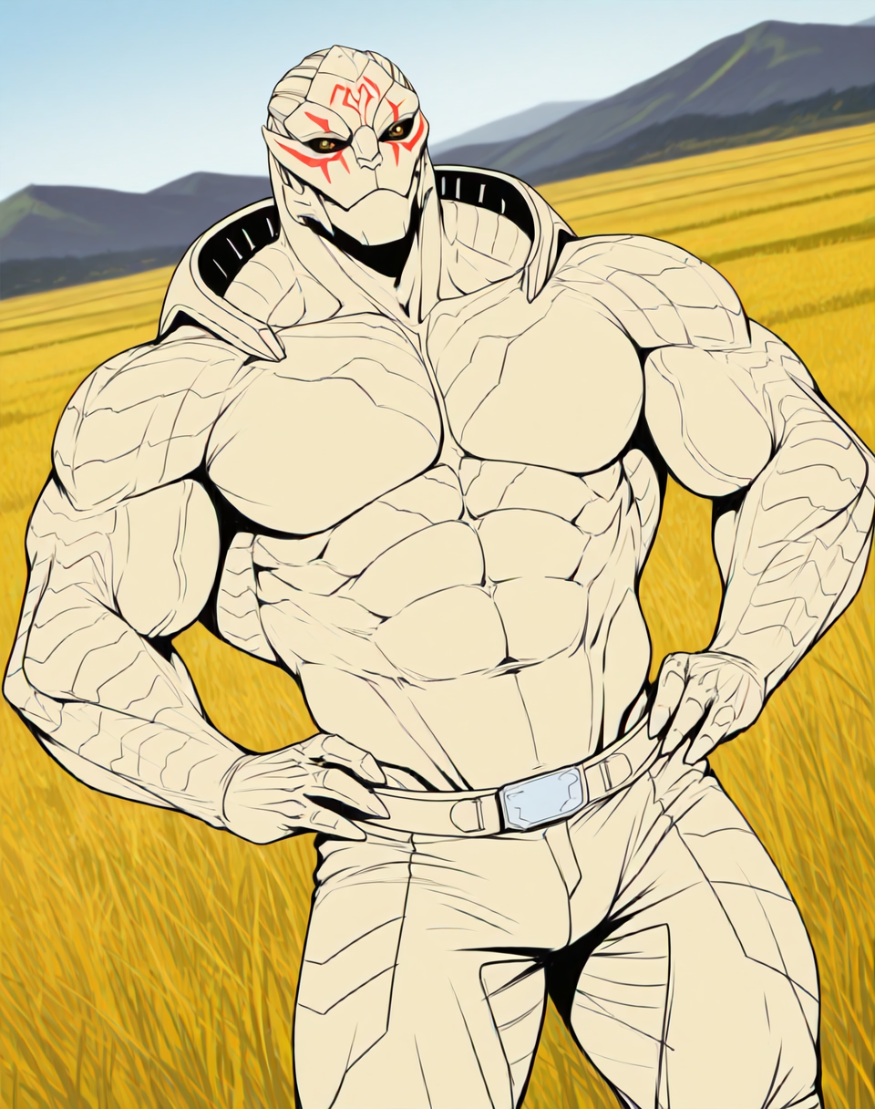 このLoRA用のプロンプトは(TurianFA, muscular, Turian, )です。