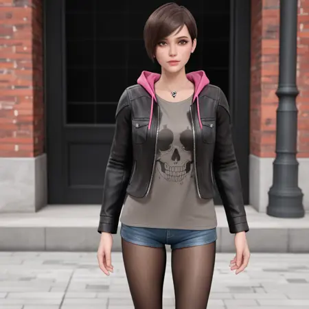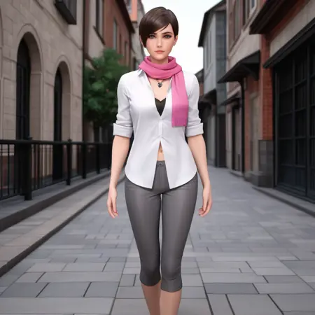 이 모델은 비디오 게임 '레지던트 이블: 계시록 2'의 캐릭터 모이라 버트론의 유사한 외모를 생성합니다.