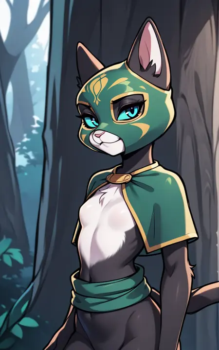 강화 태그: 털, 꼬리, 동물 코, 파란 눈, 몸 털, 고양이 꼬리, 흰 털, 검은 털, 고양이 귀, 동물 귀, 이색 털, 녹색 스카프