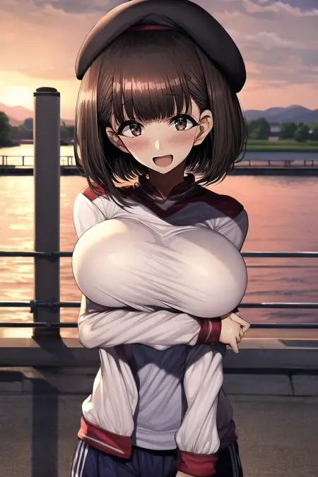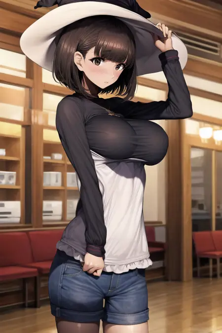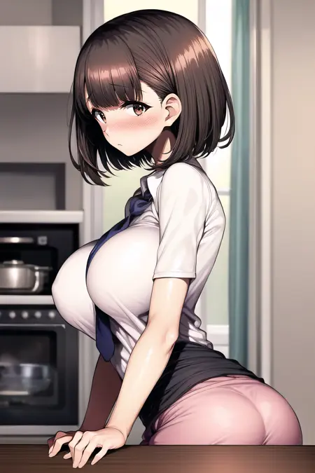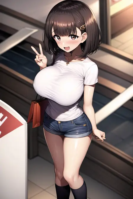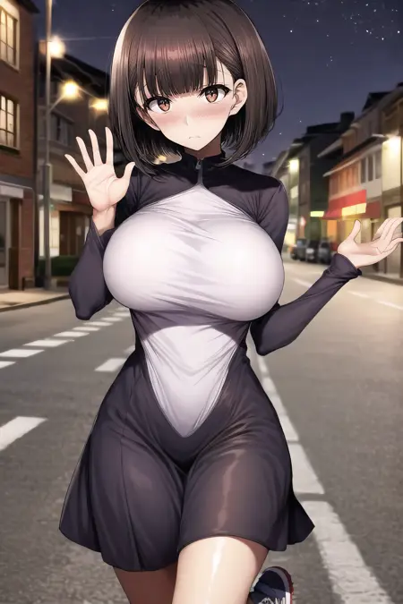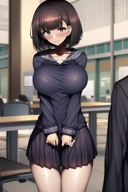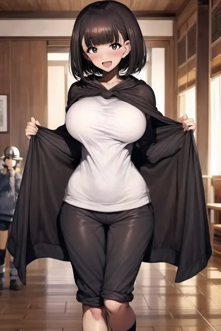 추가 단어: 갈색 머리, 단발, 밥컷, 중앙 플랩 앞머리, 둔한 앞머리, 큰 가슴, 갈색 눈, 타레메, 큰 눈
