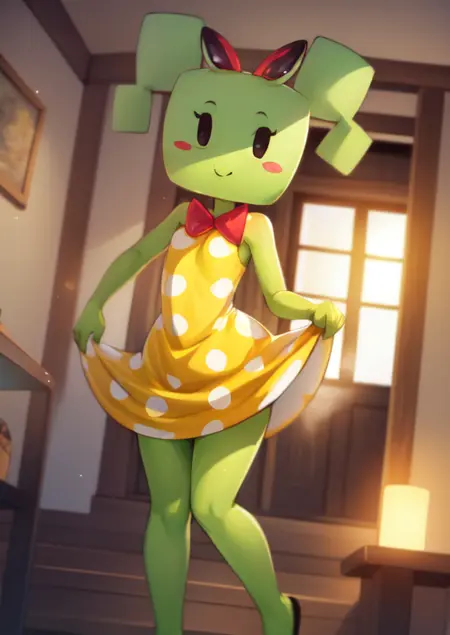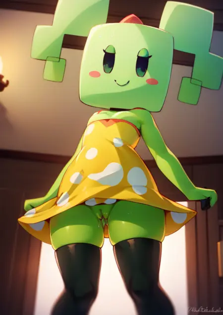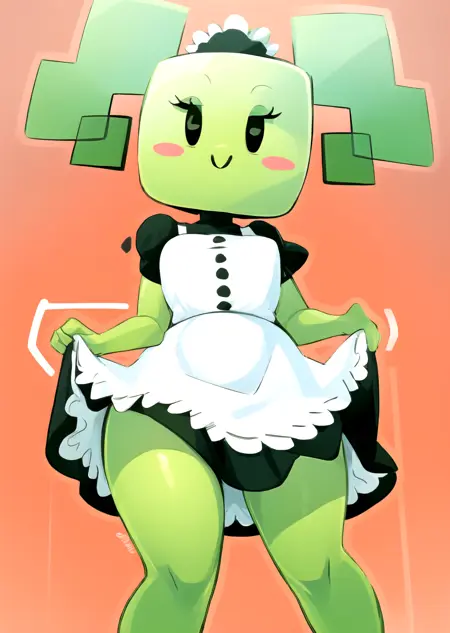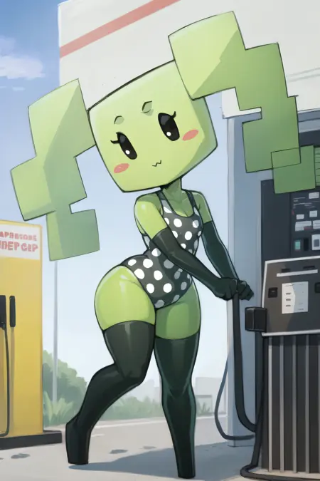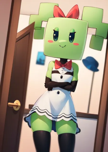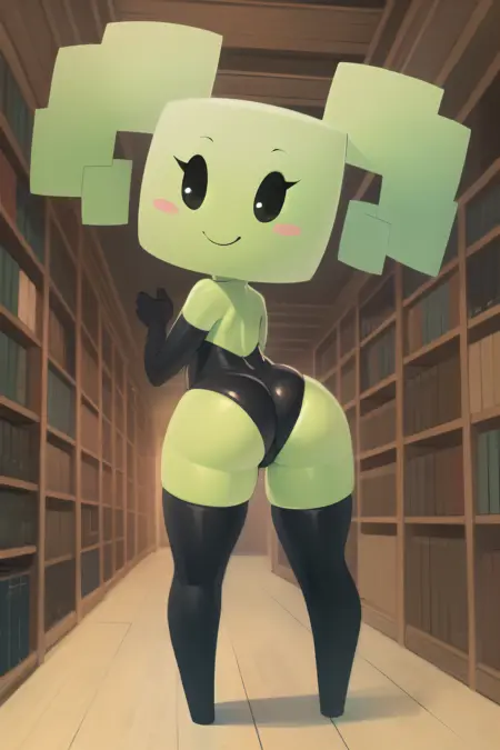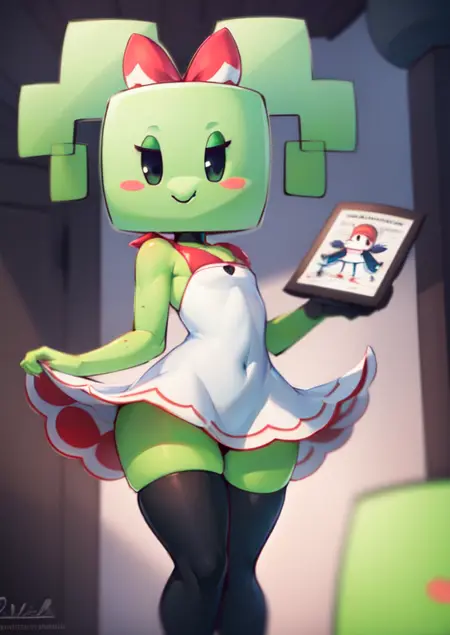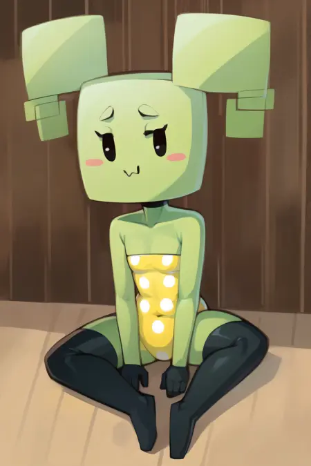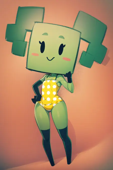 我还建议不要使用典型的“1girl”标签,因为它会更常让她呈现人类形态。当然,如果你想要这种效果,也可以使用!同时,请务必使用“square, square head”来更频繁地获得她的方头形状!