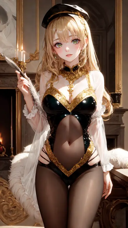 4、触发词为:,tutututu, black one-piece swimsuit, collar, navel, see-through,都写上的话,如果能正确出图,参数设置无误,又没有其他LORA干扰,权重开到0.9以上,大概率会几乎100%还原原版衣服。