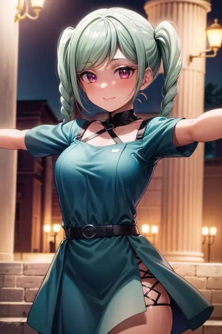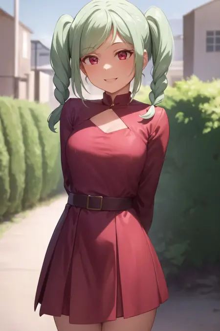 必要なタグ: 1girl, solo, onitsuka tomari, twin braids, twintails,