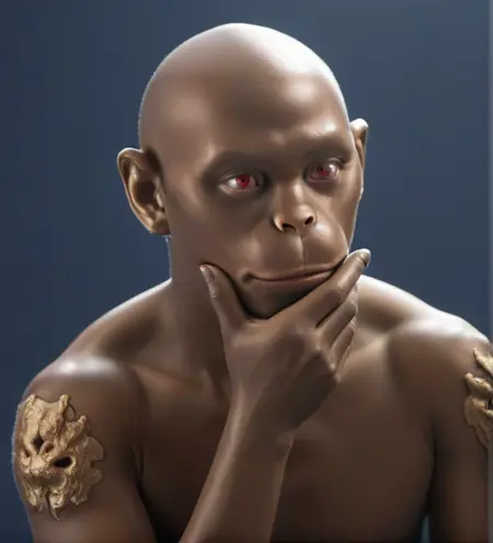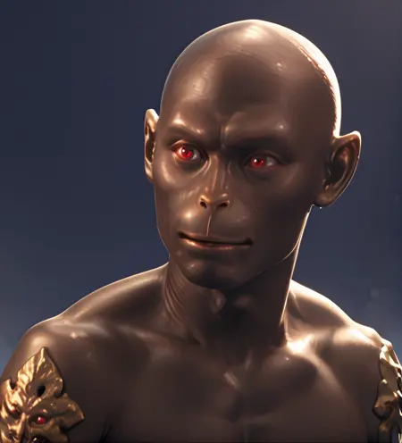 prompt:monkey demon, naked monkey, hairless monkey,monkey face,male monkey,Dark skin, glossy skin,