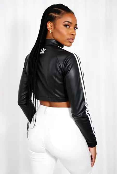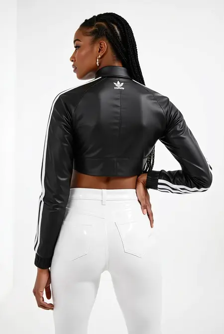 此LoRA重现了与杰里米·斯科特合作设计的独特短款阿迪达斯夹克。该服装通过非传统的剪裁和前卫的结构,展现出大胆而鲜明的个性。较短的版型与合成皮革材质为经典的阿迪达斯运动夹克造型注入了现代时尚的革新元素,而后颈处的三叶草标志则凸显了“三条纹”的标志性身份。