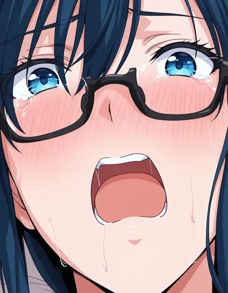 mai_tsnk,mai_ayakotk,mature_female,long_hair,ponytail,dark_blue_hair,blue_eyes,large_breasts,glasses,office_lady,suit,jacket,white_shirt,skirt_suit,pencil_skirt,bare_legs,high_heels