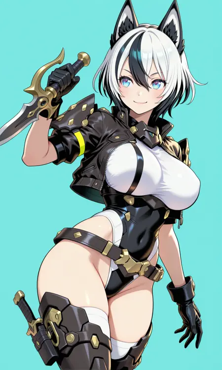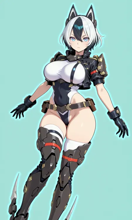 태그: 흰 머리카락, 짧은 머리카락, 스트라이프 머리카락, 이톤 머리카락, 눈 사이의 머리카락, 파란 눈, 동물 귀, 머리 장식,