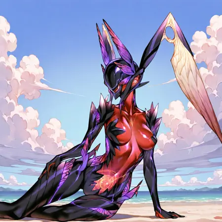 • You can add her wings and weapon with the tags "mechanical wings" and "beam rifle" respectively but don't expect the best results from them