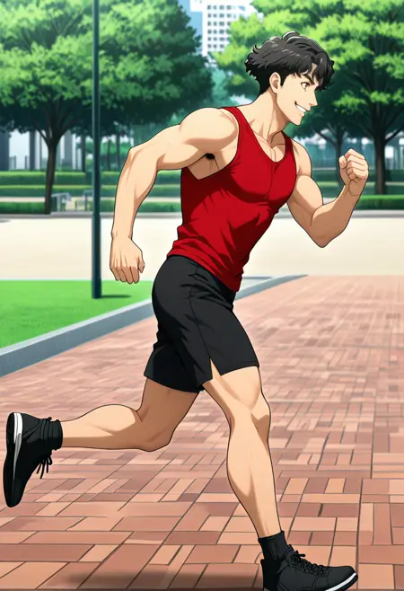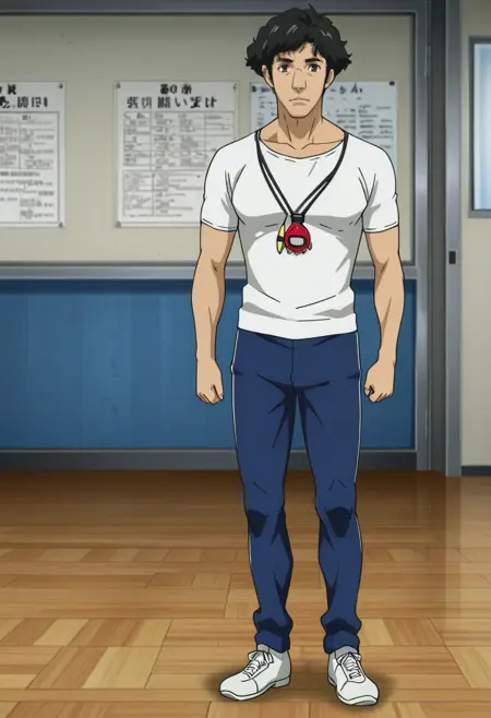 His stopwatch does not have a consistent design in the anime. I did have to manually edit all of them to one uniform design to varying results. In the anime he wears regular blue track pants but in the game his blue track pants have a white stripe as well. I hope you guys like it though!