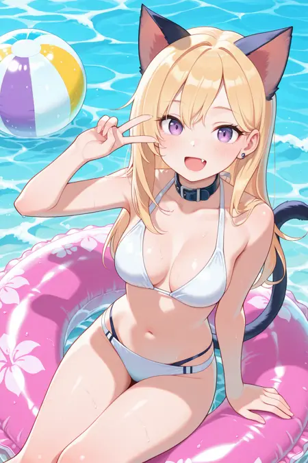 cat1stjob6315, blonde hair, long hair, purple eyes, animal ears, cat ears, ear piercing,