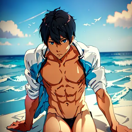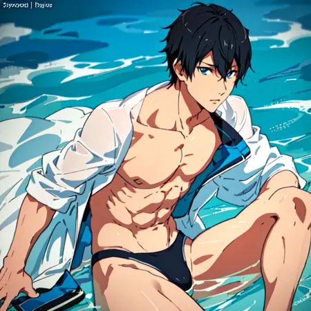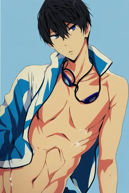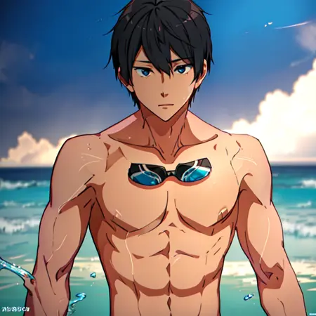 1) Regular outfit >>> nanase_haruka \(free!\) a man in a sezy_bathsuit, swimming goggles, shirtless, abs