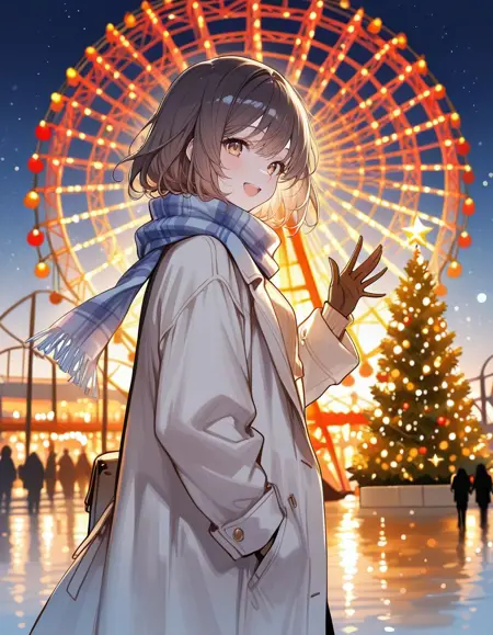 tree, tree-lined avenue, lights, christmas lights, christmas tree, city lights, ferris wheel,