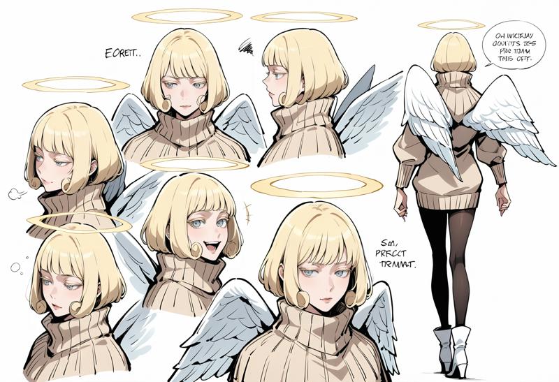翼, 天使, 天使の翼, 羽根の翼, 白い翼, パンティストッキング, ブーツ, セーター, 黒いパンティストッキング, 長袖, ハイネック, 白い靴, ハイヒール, アンクルブーツ