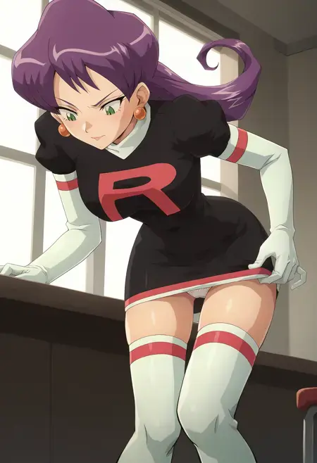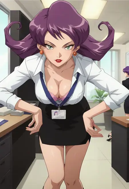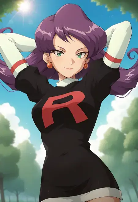 宫本,火箭队,飘浮的头发,紫色头发,刘海,绿色眼睛,橙色耳环,成熟年龄