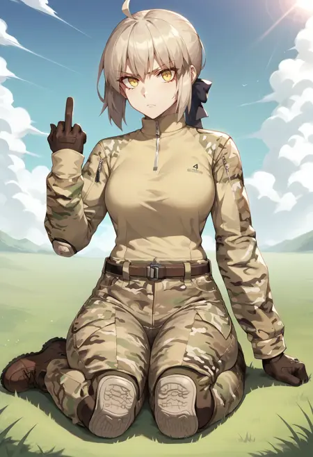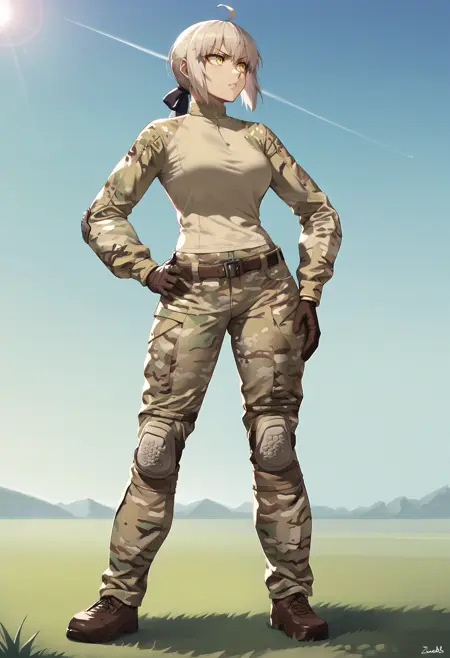 G4MulticamUniform, camouflage, camouflage pants, camouflage shirt, long sleeves, zipper, brown gloves, belt,