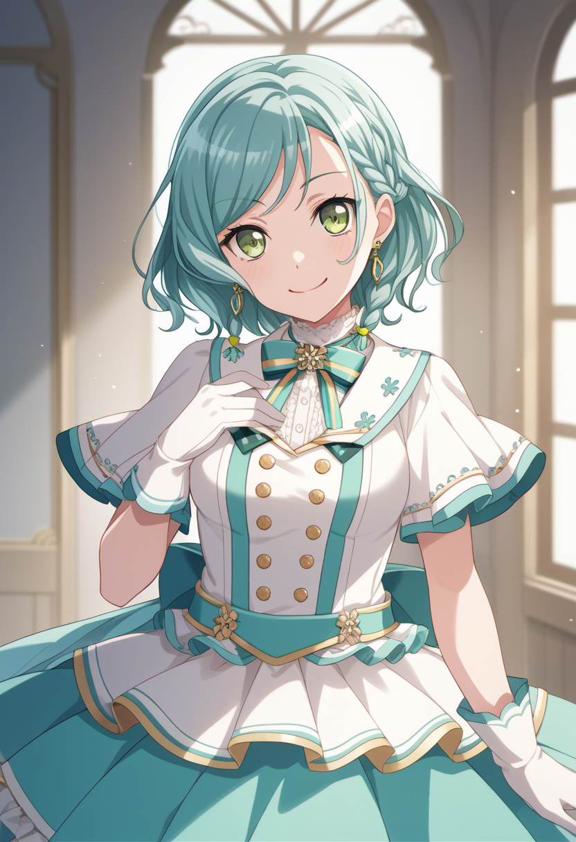 트리거 단어: hikawa hina, 짧은 머리, 청록색 머리, 녹색 눈,