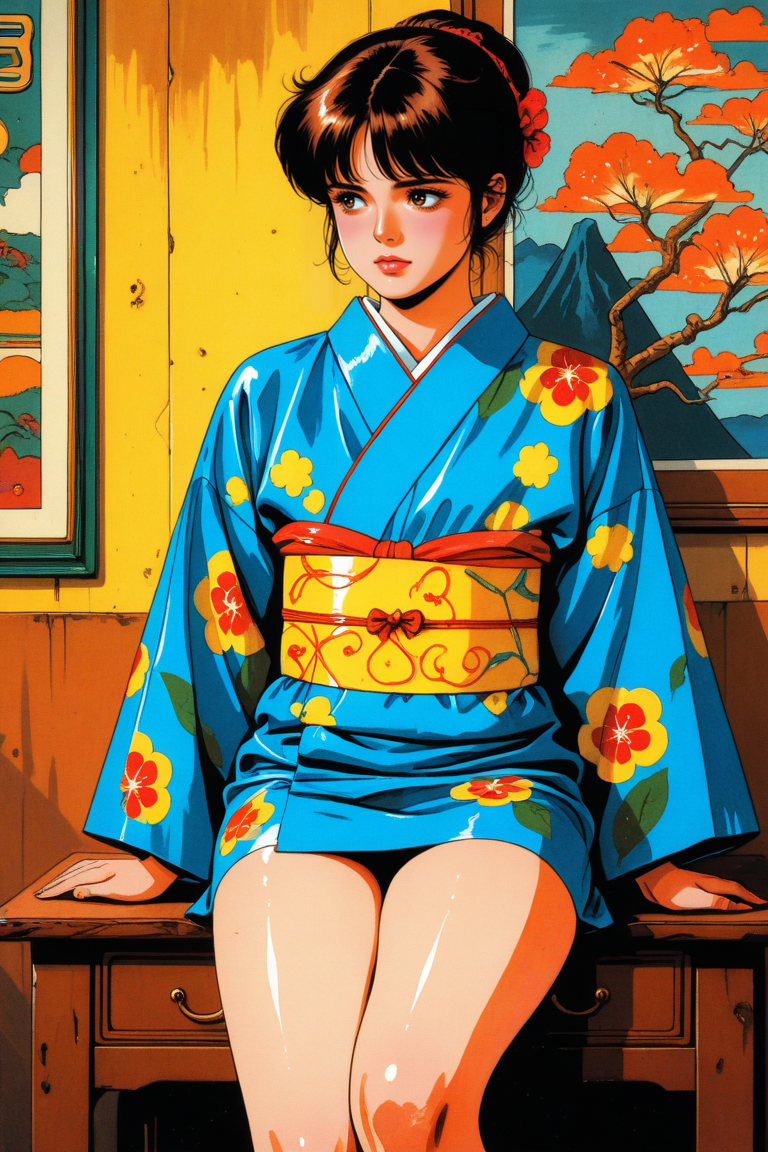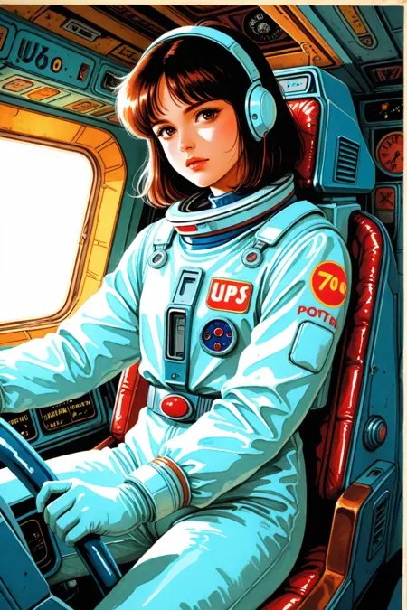 프로 팁: Vintage Pinup, Pop art, 70년대/80년대 텍스처, 레트로 일러스트, 빈티지 펄프 아트, 아트데코, 광택 있는 펄프 아트, 수채화, 레트로퓨리즘, Adetailer(필요시) 사용