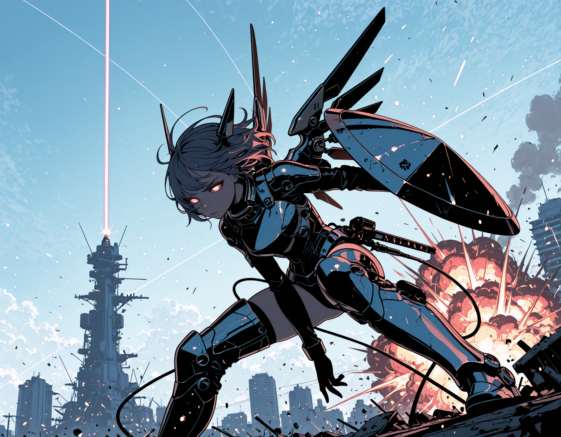 与偏好静态、肖像式构图的标准动漫模型不同,ANIMA 对动态构图表现出强烈偏好。它常在未被提示的情况下主动采用激进的镜头角度(鱼眼、低角度、高角度)和强烈的色彩理论。