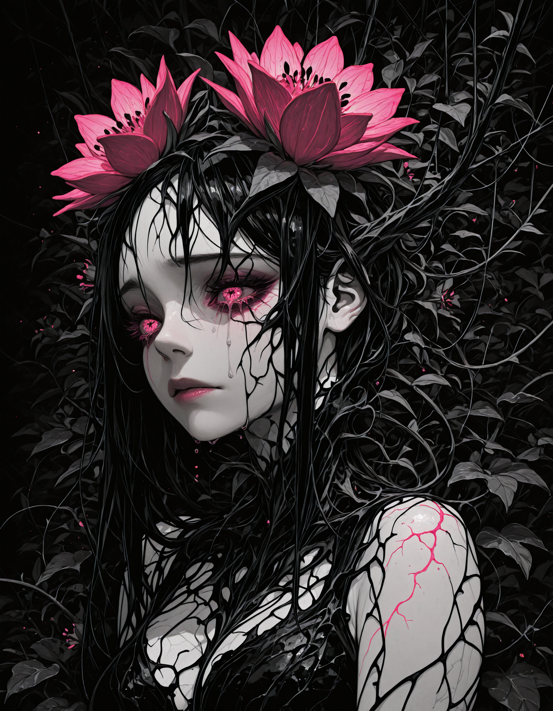 主体 #00(代号:NIHIL) 被设计为拒绝标准动漫模型的“干净”与“无菌”外观。在测试期间,它表现出强烈的倾向,将光源压碎并将阴影加深至绝对的黑色点。它在高对比度环境中如鱼得水,似乎热衷于渲染如墨水、血液和生物机械流体等具有冲击力的质感。