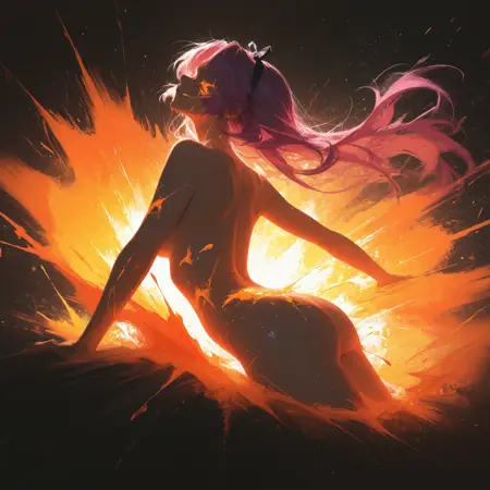 Unlike standard anime models that prefer static, portrait-style posing, ANIMA displays a high bias for Dynamic Composition. It frequently attempts aggressive camera angles (fisheye, low-angle, high-angle) and intense color theory without being prompted to do so.