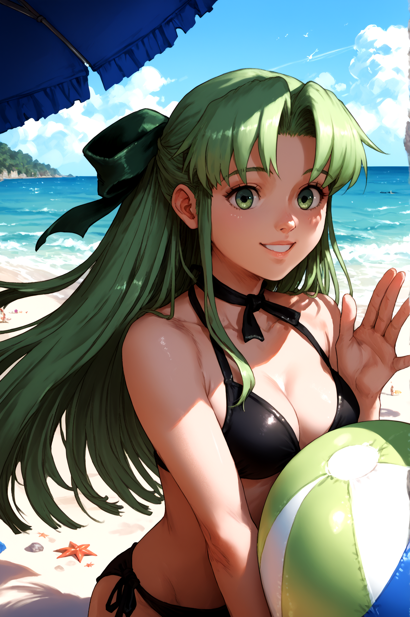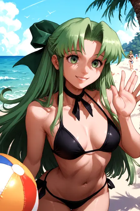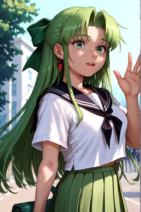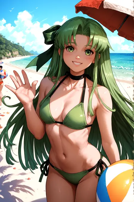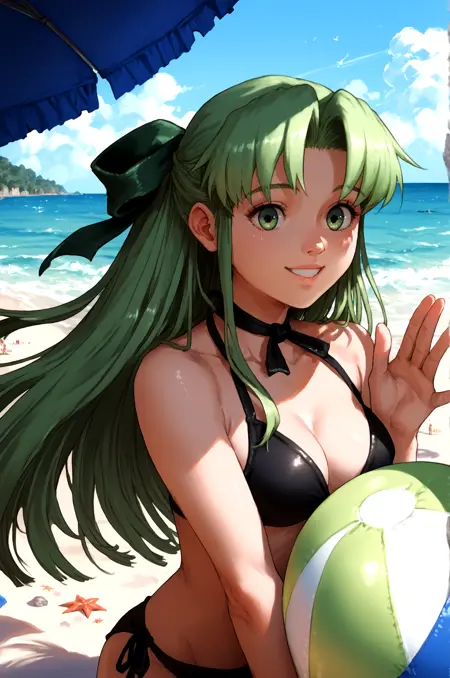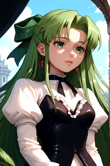 예시 프롬프트: Fia_(riviera), 1girl, 활, 드레스, 프릴, 그린_드레스, 긴머리, 긴소매, 퍼프_소매, 솔로, 매우_긴_머리, 프릴_드레스, lora:RtPL-FiaV1:1.0, 미소, 손을 허리에 얹음,