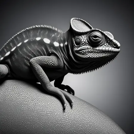 "가지 위의 상세한 캠레온, 회색조, zdisrupt:0.6"