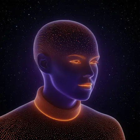 "별을 바라보는 미래형 안드로이드의 프로필, 네온 윤곽선, zdisrupt:0.7"
