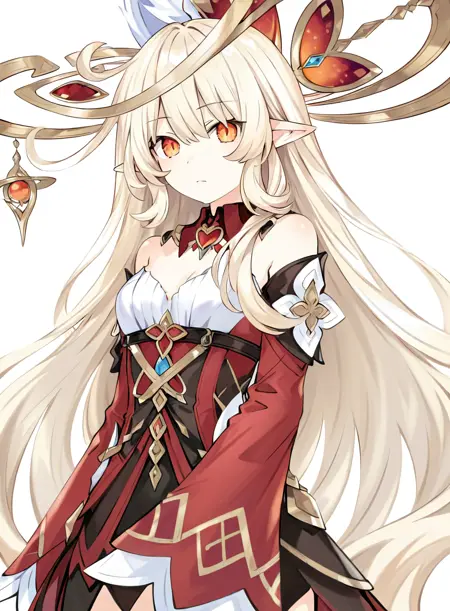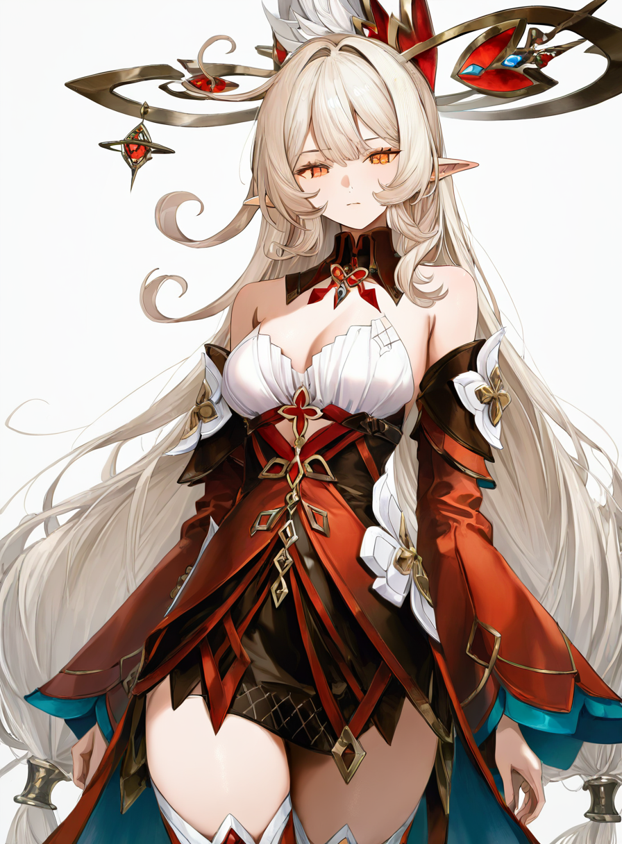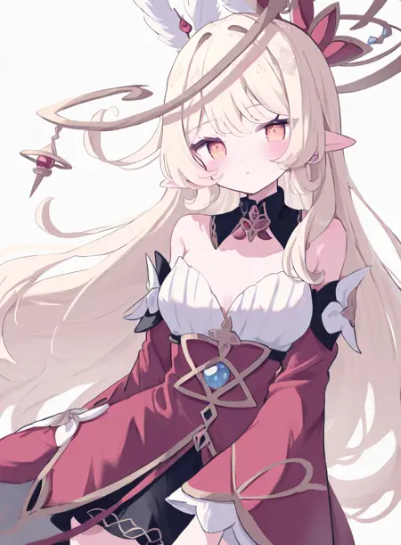 pointy ears,bare shoulders,detached sleeves,dress,hair ornament,detached collar,long sleeves,