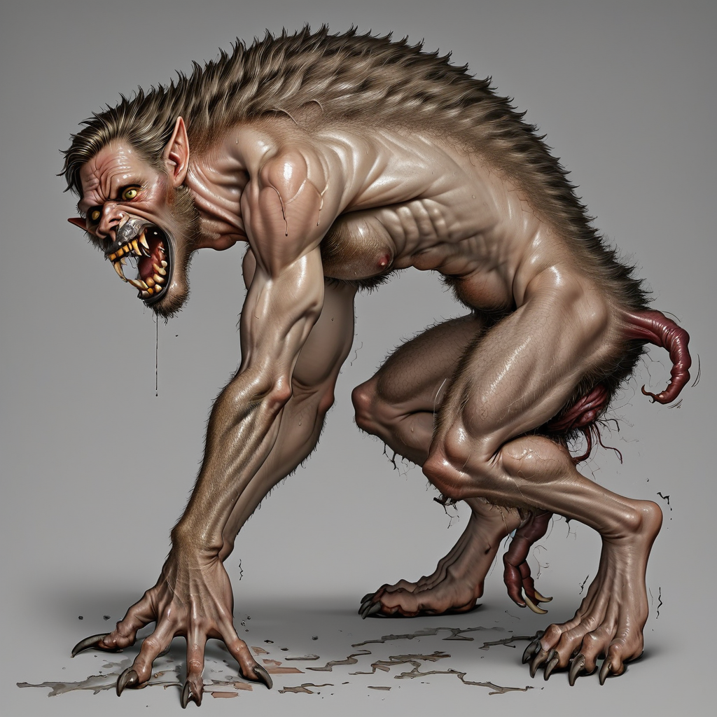 Werewolf_lora, Werewolf, mid-transformation, transformation, fully transformed, photorealistic, manga, realistic, hairy, wolf eyes,