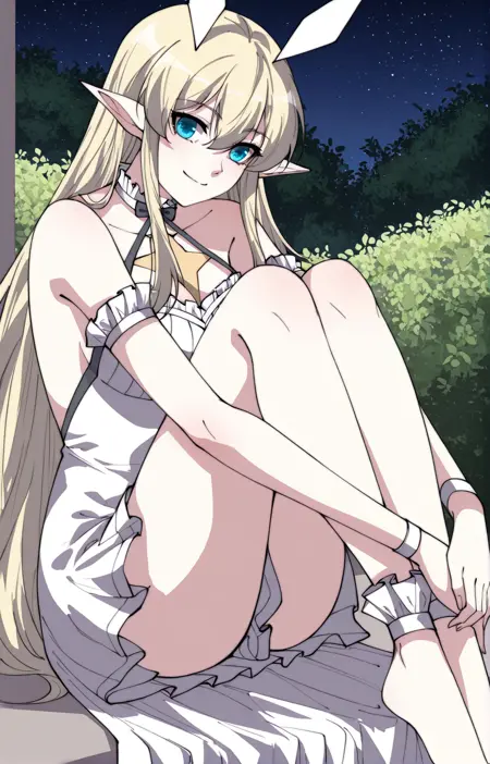 Spirishen、1人Girl、シングル、青い目、金髪、長い髪、不揃いの前髪、目の間に髪、長い横髪、ほつれた髪、尖った耳、白い髪飾り、