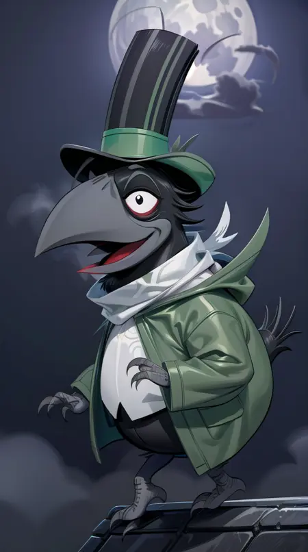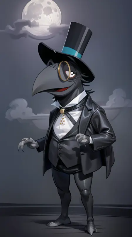 기본 프롬프트: rubygloom_poe, 1boy, solo, chibi, furry male, beak, black eyes, white pupils, fat, dark skin, claws, no humans, short legs